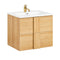 - Der Waschbeckenunterschrank ist an der Wand über dem Boden befestigt, was verhindert, dass der feuchte Badezimmerboden das Holz verrottet.