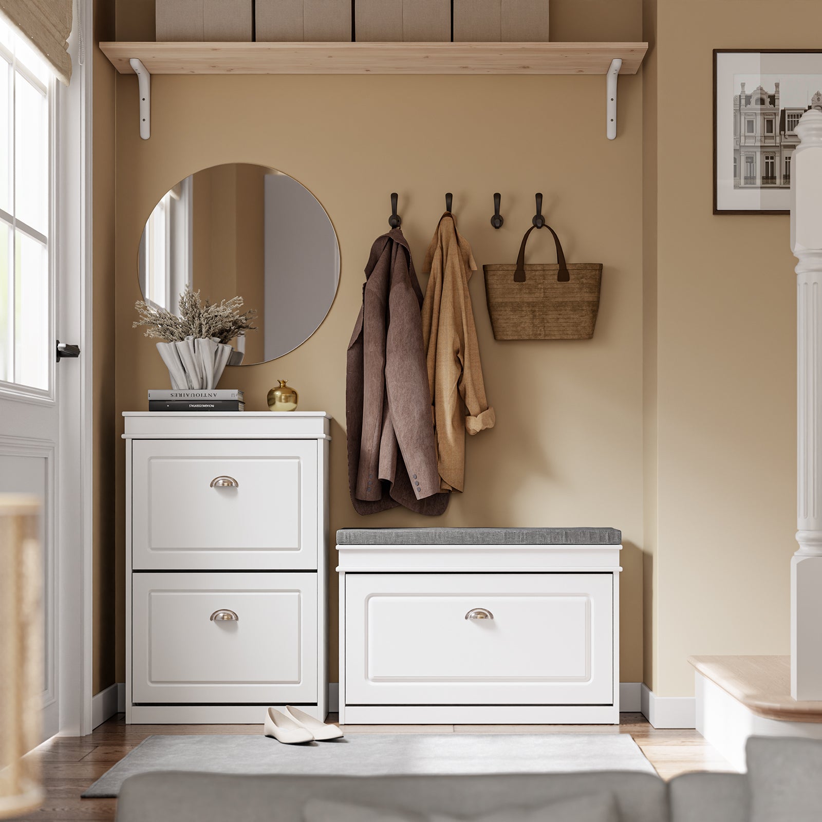 SoBuy | Schuhkipper | Schuhbank mit Schuhfach | Landhausstil Weiß | FSR64-W
