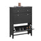 - Die Höhe der Schuhfächer können durch herausnehmbare Böden verstellt werden, somit haben auch höhere Schuhe hier Platz.