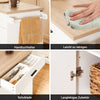 - Die Einlegeböden hinter den Türen sind dreifach höhenverstellbar und können auch einfach herausgenommen werden. So können Küchenutensilien unterschiedlicher Höhe darin gelagert werden.